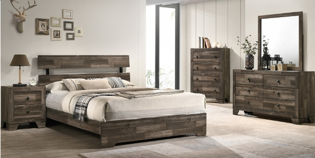 Bedroom set includes: Bed, dresser, mirror, chest and 1 night stand.